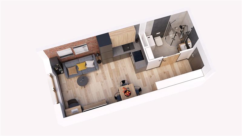 W ramach I etapu powstaną trzy budynki z lokalami usługowymi o charakterze mikroapartamentów o pow. od 21m2 do 29m2.