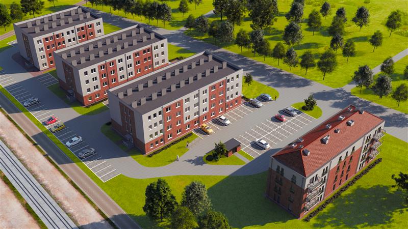 W ramach I etapu powstaną trzy budynki z lokalami usługowymi o charakterze mikroapartamentów o pow. od 21m2 do 29m2.
