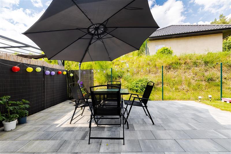 Na działce zlokalizowane są dwa miejsca postojowe, istnieje możliwość posadowienia wiaty garażowej. Na ogród wyprowadzono ujęcie wody.