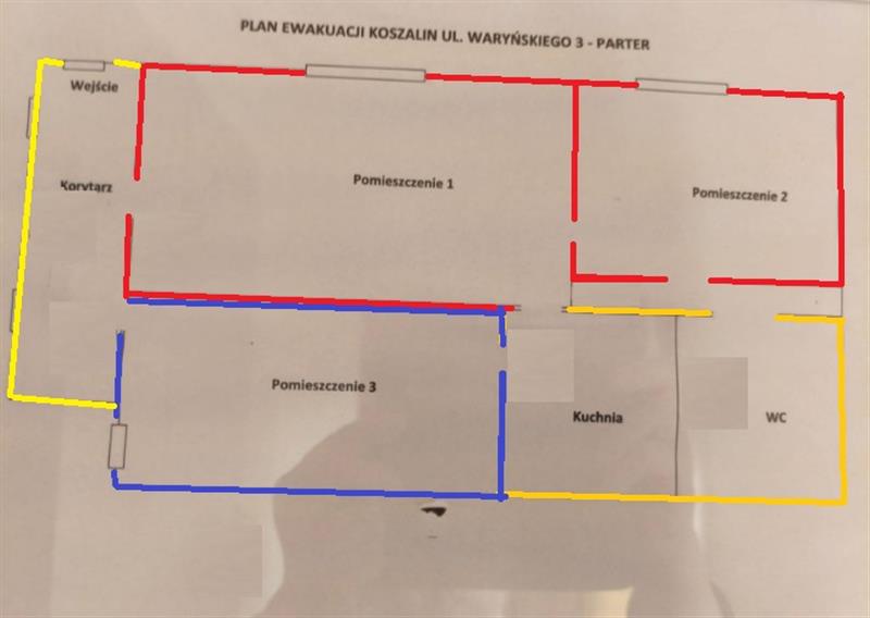 Do wynajęcia również część lokalu o pow. 17 m2 składająca się z jednego pokoju ( na plane zaznaczona kolorem niebieskim) z możliwością korzystania z kuchni i łazienki - 1.700 zł/m-c